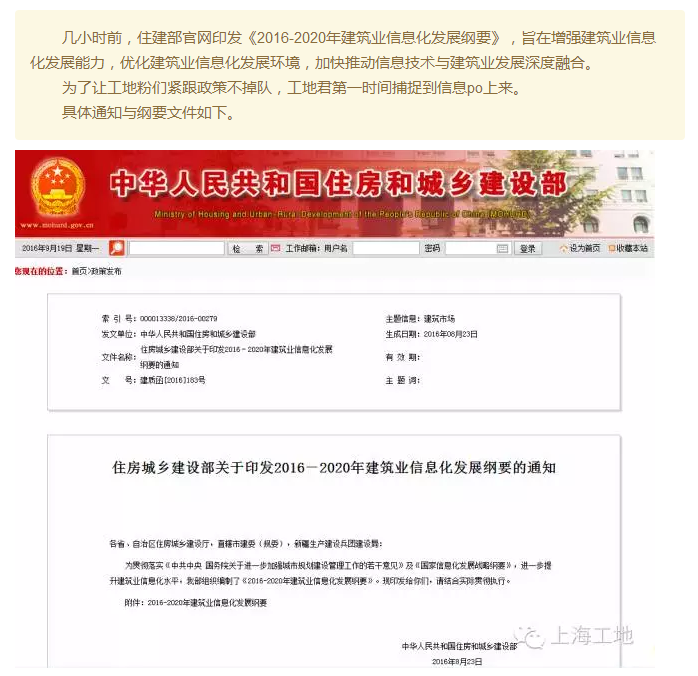 來源 | 上海工地 素材來自住建部官網(wǎng) 作者 | 平倩雯 正文如下: 2016-2020年建筑業(yè)信息化發(fā)展綱要 建筑業(yè)信息化是建筑業(yè)發(fā)展戰(zhàn)略的重要組成部分,也是建筑業(yè)轉變發(fā)展方式、提…