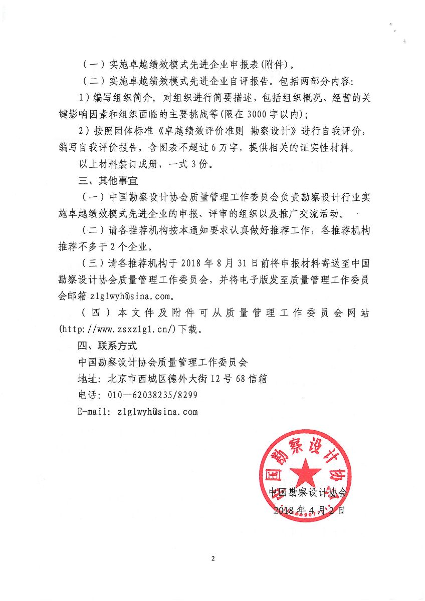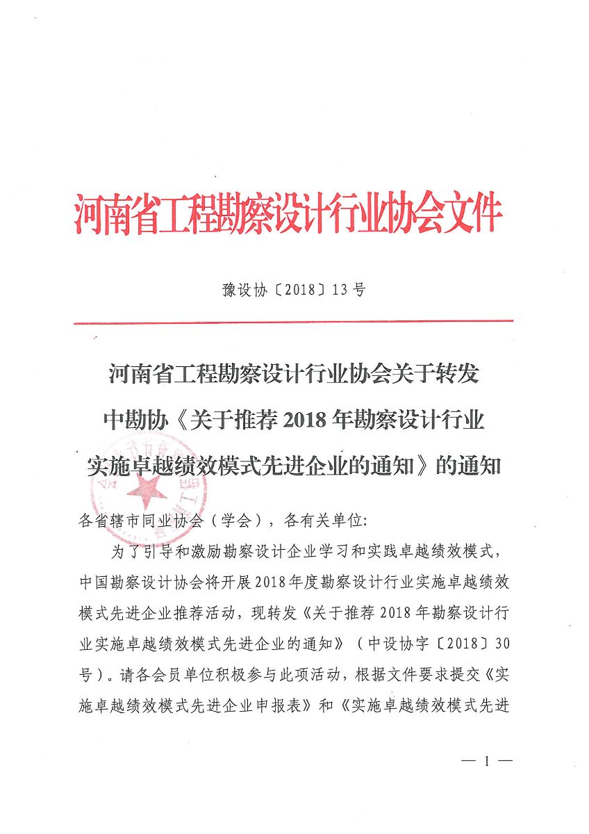 協(xié)會關(guān)于轉(zhuǎn)發(fā)中勘協(xié)《關(guān)于推薦2018年勘察設(shè)計行業(yè)實施卓越績效模式先進企業(yè)的通知》的通知