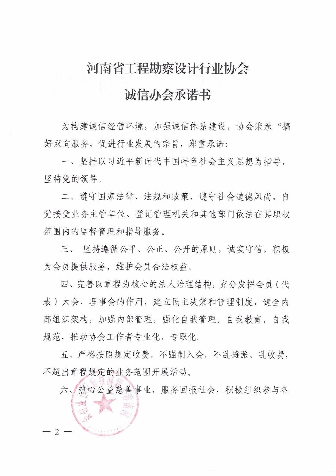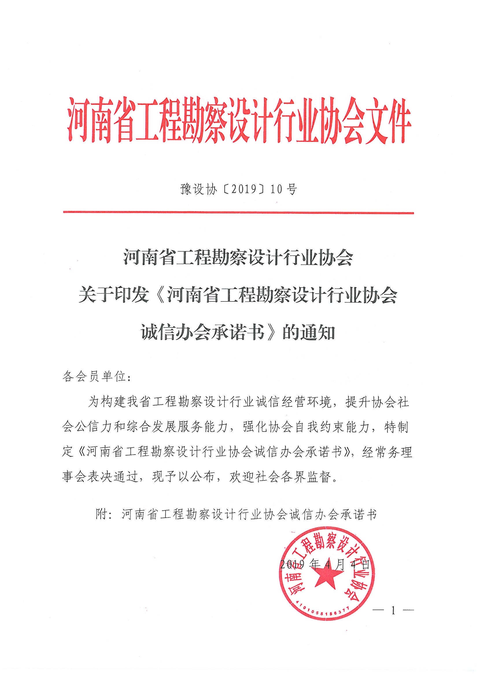 協(xié)會(huì)關(guān)于印發(fā)《河南省工程勘察設(shè)計(jì)行業(yè)協(xié)會(huì)誠信辦會(huì)承諾書》的》通知