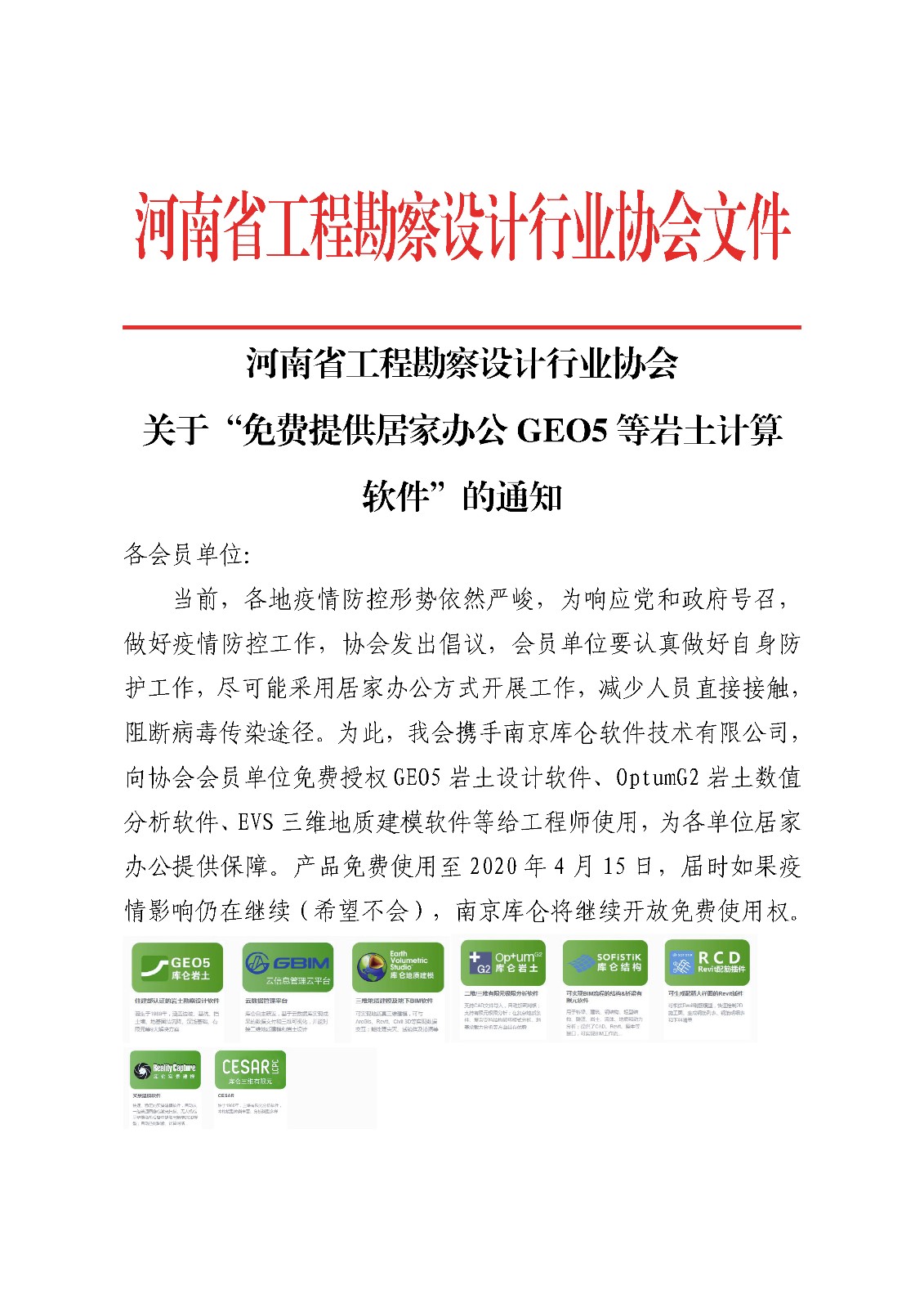 省協(xié)會(huì)關(guān)于“免費(fèi)提供居家辦公GEO5等巖土計(jì)算軟件”的通知