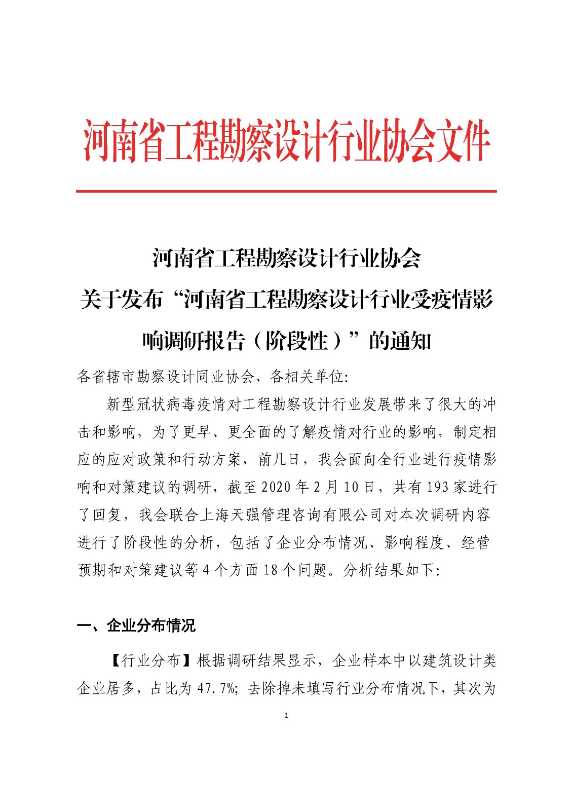 省協(xié)會關(guān)于發(fā)布“河南省工程勘察設(shè)計(jì)行業(yè)受疫情影響調(diào)研報(bào)告(階段性)”的通知