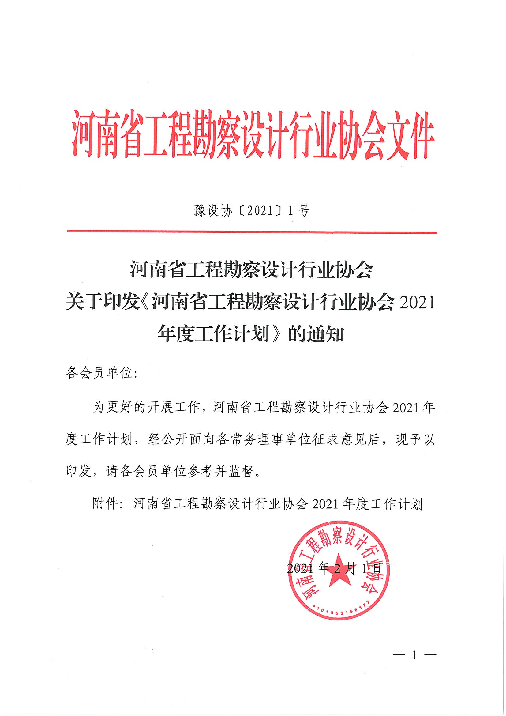 關(guān)于印發(fā)《河南省工程勘察設(shè)計(jì)行業(yè)協(xié)會(huì)2021年度工作計(jì)劃》的通知