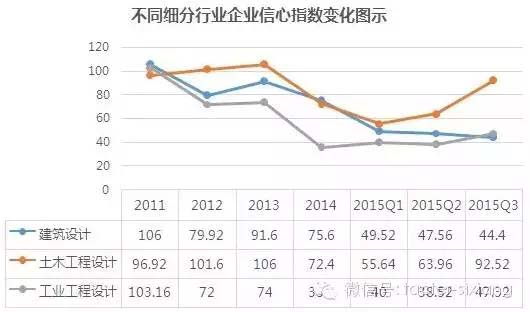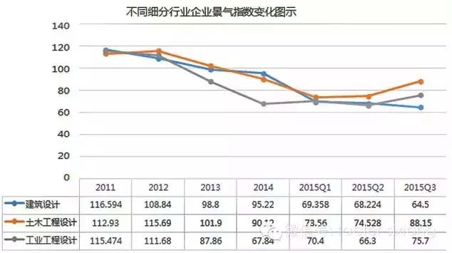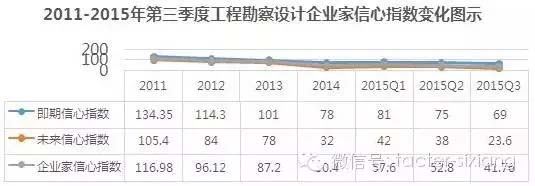 10月27日,上海天強(qiáng)管理咨詢有限公司發(fā)布了行業(yè)首個工程勘察設(shè)計企業(yè)發(fā)展景氣指數(shù)及企業(yè)家信心指數(shù)。根據(jù)此次發(fā)布的數(shù)據(jù),以100為基準(zhǔn),2015年第三季度,行業(yè)內(nèi)企業(yè)發(fā)展景氣指數(shù)跌至66,表明行業(yè)發(fā)展陷入低迷狀態(tài);而企業(yè)家發(fā)展信心指數(shù)已經(jīng)跌至41.8,企業(yè)家對行業(yè)發(fā)展預(yù)期已陷入悲觀狀態(tài)。