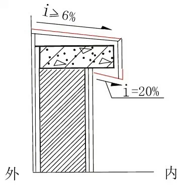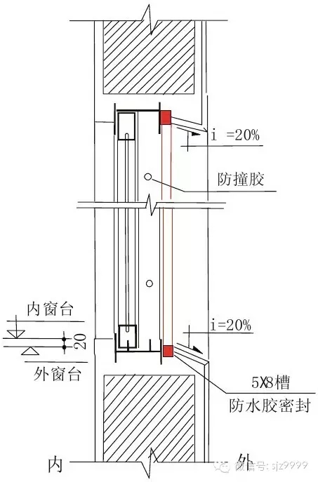 窗楣做鷹咀,外窗臺(tái)低于內(nèi)窗臺(tái),外窗臺(tái)做向外排水坡