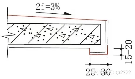 女兒墻壓頂、陽(yáng)臺(tái)欄板壓頂面做向內(nèi)排水坡,下面做鷹嘴或滴水線