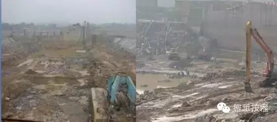 由于對承壓水的降水不當,在隔水層中開挖基坑時,當基底以下承壓含水層的水頭壓力沖破基坑底部土層,將導致坑底突涌破壞。下圖為上海某深基坑坑底內(nèi)發(fā)生承壓水突涌。