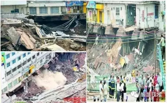 最終在廣州海珠區(qū)江南大道南珠城海廣場深基坑發(fā)生滑坡,導致三人死亡,4人受傷,地鐵二號線停運近一天,7層的海員賓館倒塌,多加商鋪失火被焚,一棟7層居民樓受損,三棟居民被迫轉移。下面是一些事故照片。