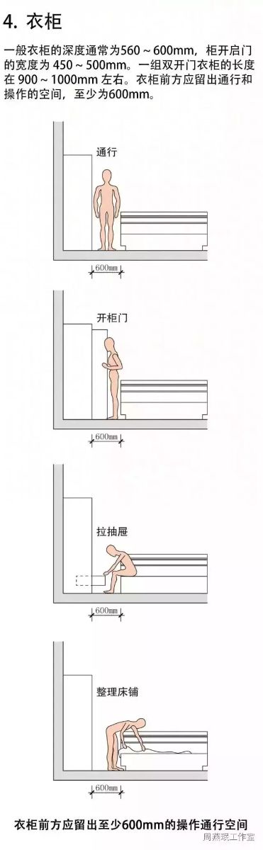 相對于中青年人群比較重視的臥室私密性,老人臥室更需要的是安全性和舒適度。因此,老人臥室的空間設(shè)計應(yīng)遵循以下四大設(shè)計原則:保證適宜的空間尺寸,形成集中的活動空間,保證家具擺放的靈活性和營造舒適的休息環(huán)境。