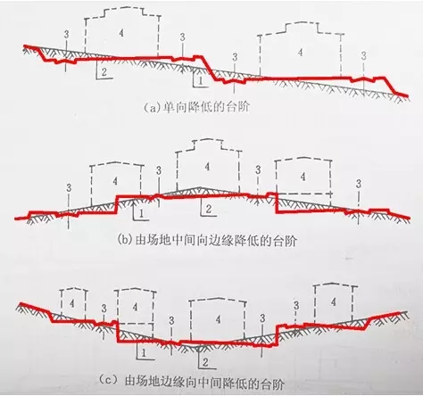 臺(tái)階高差一般以3.0——4.0m為宜(最高4.0——6.0m),以免道路坡道過(guò)長(zhǎng)、交通組織困難并增加擋土墻等支擋結(jié)構(gòu)工程量。