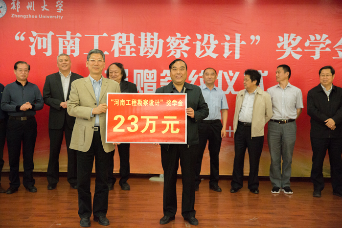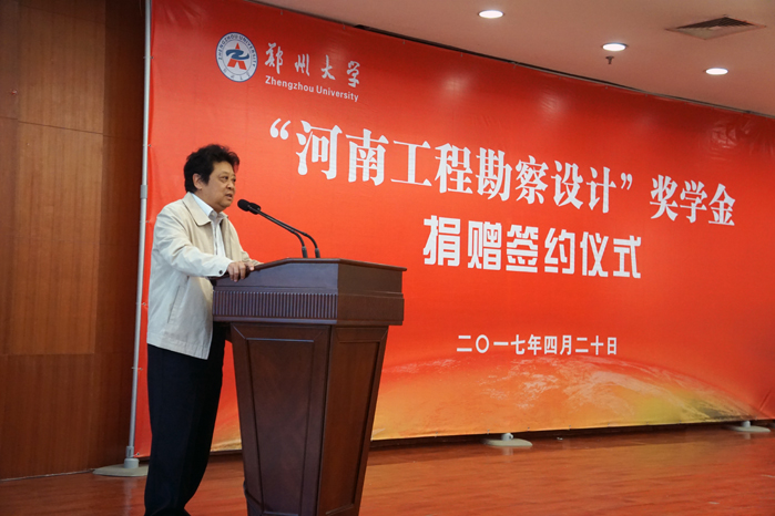 4月20日,“河南工程勘察設計”獎學金簽約儀式在鄭大校園舉行。鄭州大學副校長宋毛平代表鄭州大學致辭,介紹了鄭大的發(fā)展歷程和鄭州大學教育發(fā)展基金會的現(xiàn)狀,對協(xié)會所做工作表示感謝,對捐贈單位支持教育事業(yè)、熱心奉獻社會的卓識善舉表示敬意。