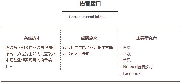 中國是發(fā)展語音接口的理想市場,因為使用微型觸摸屏來進行漢字輸入十分麻煩。不過,隨著百度在語音技術(shù)方面的不斷進步,語音接口變得更為實用和有效,人們可以更為便利的與身邊的設(shè)備進行互動。百度的深度語音識別系統(tǒng)(Deep Speech 2)包含了一個非常大的、“深”的神經(jīng)網(wǎng)絡(luò),它引入了數(shù)以百萬計的轉(zhuǎn)錄語音。有時它在識別漢語語音片段方面,要比人為識別更加準確。