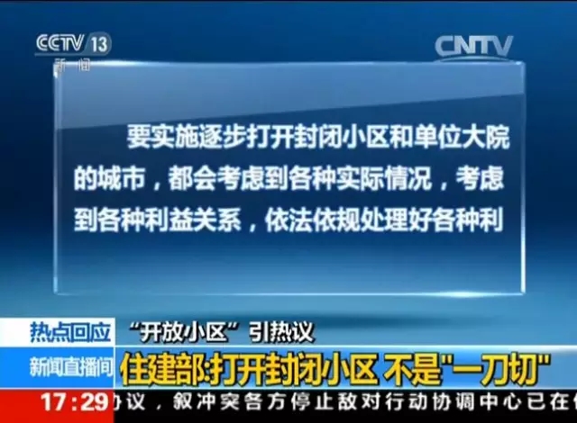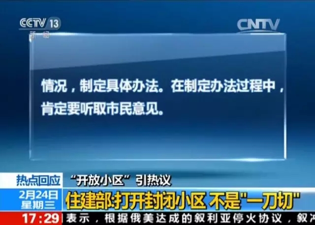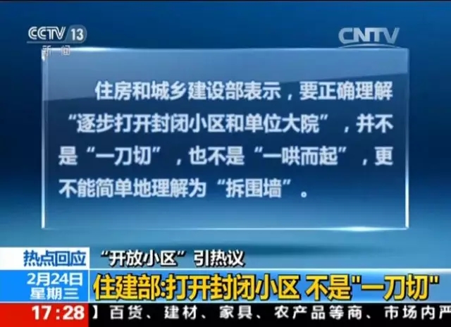 (根據(jù)2月24日中央電視臺新聞頻道17:00時段17:28分播出的《新聞直播間》“關注開放小區(qū)”新聞消息整理)