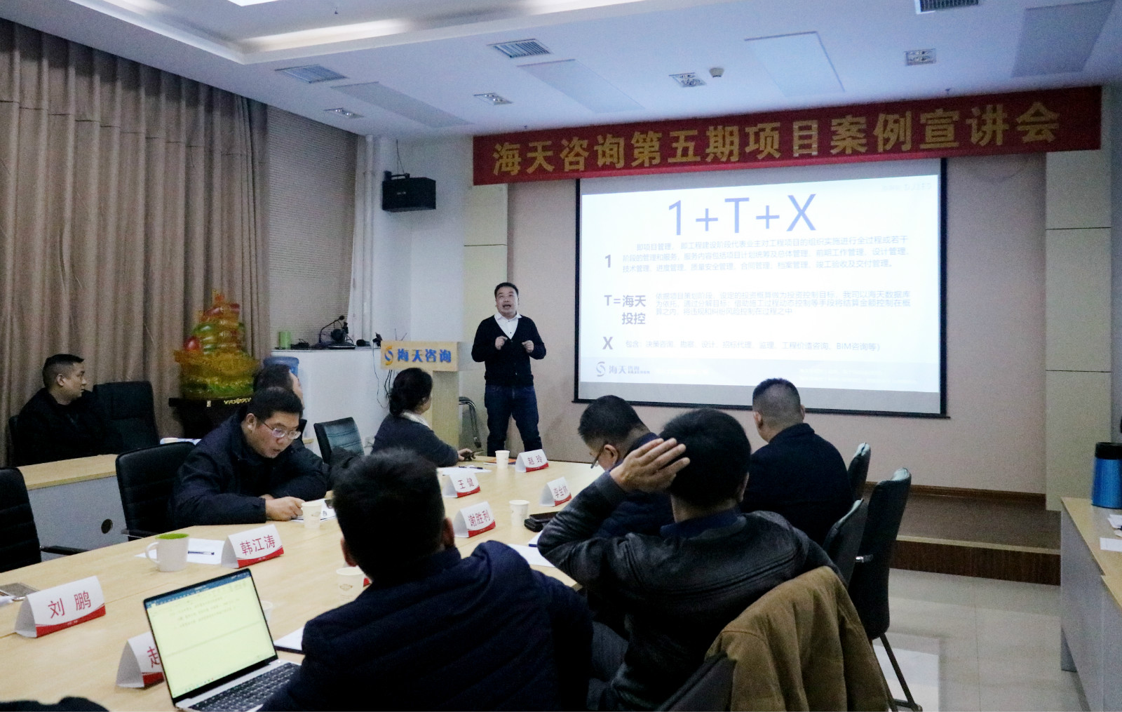 海天咨詢是協(xié)會(huì)經(jīng)過甄選,確定下來的學(xué)習(xí)交流單位,是一家基于BIM技術(shù),以投資管控為核心的全生命周期工程咨詢公司;該公司工程造價(jià)咨詢業(yè)務(wù)連續(xù)多年收入和規(guī)模位居河南省第一,塑造了“投資管控 就選海天雙控”的品牌形象。海天咨詢是我省最早開展全過程工程咨詢實(shí)踐的公司,承接了住宅、公建、市政等行業(yè)多個(gè)全過程工程咨詢項(xiàng)目,打造了以“海天云”為核心、以“1+T+X”(即項(xiàng)目管理+海天投控+專業(yè)服務(wù))為特色全過程工程咨詢服務(wù)模式。海天咨詢前期咨詢部經(jīng)理劉鵬以公司全過程咨詢項(xiàng)目為例,詳細(xì)介紹了海天咨詢?nèi)^程工程咨詢實(shí)踐經(jīng)驗(yàn)。