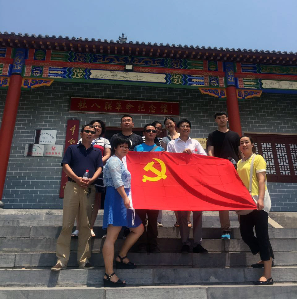 黨員和優(yōu)秀職工在杜八聯(lián)革命紀(jì)念館前合影