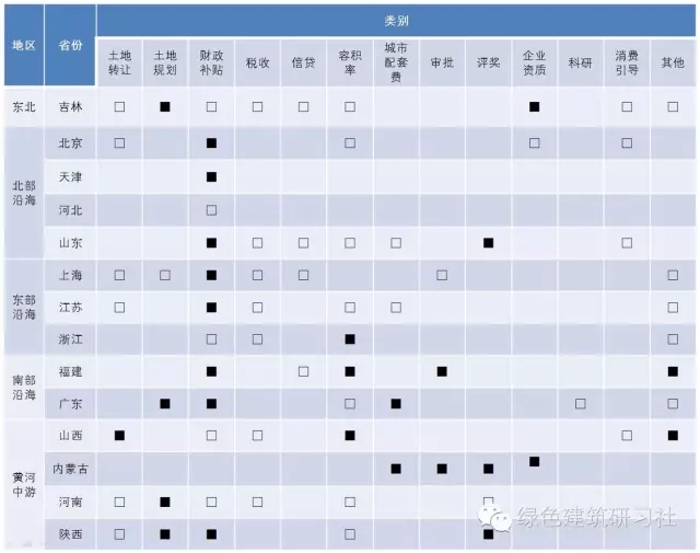 不同省份將財(cái)政補(bǔ)貼政策用于激勵(lì)綠色建筑