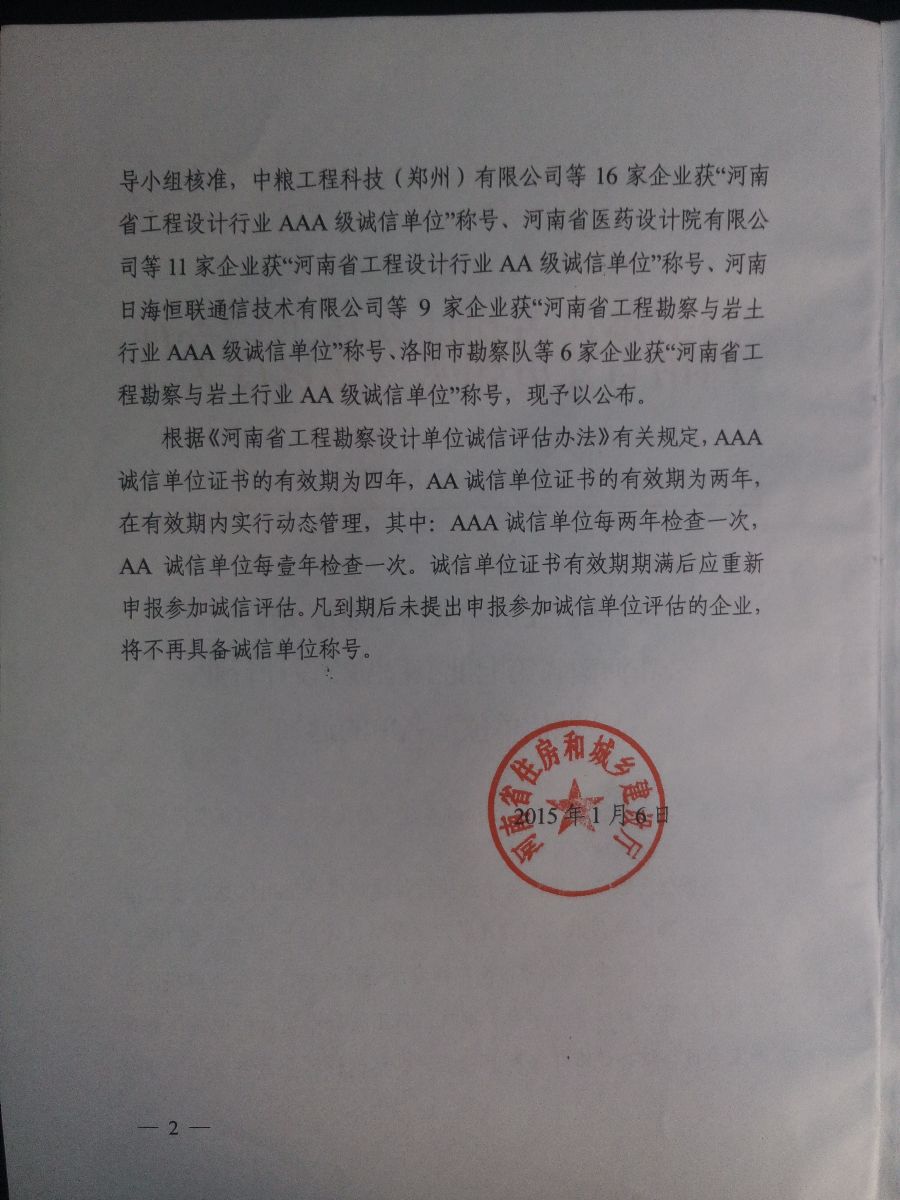 河南省住房和城鄉(xiāng)建設(shè)廳關(guān)于公布河南省第七批工程勘察設(shè)計(jì)行業(yè)“誠(chéng)信評(píng)估”名單的通知