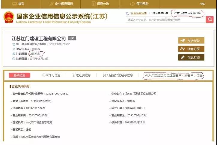 3月中旬,一則題為《興化市一假公司中標兩工程政府部門官僚瀆職有內(nèi)幕?》網(wǎng)帖引發(fā)關注。江蘇紅門建設工程有限公司于今年1月12日和3月7日,分別中標興化市海南鎮(zhèn)新伍村幼兒園新建工程和安豐鎮(zhèn)自來水管網(wǎng)改造工程三標段。兩個項目中標價分別為169.58萬元、81.14萬元,總標價250多萬元。而實際上,該公司早在3年前就已注銷。