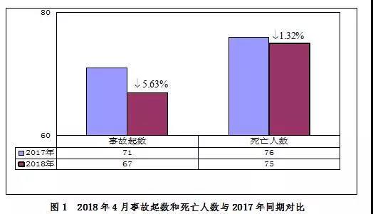 2018年4月,全國(guó)共發(fā)生房屋市政工程生產(chǎn)安全事故67起、死亡75人,比去年同期事故起數(shù)減少4起、死亡人數(shù)減少1人,分別下降5.63%和1.32%。