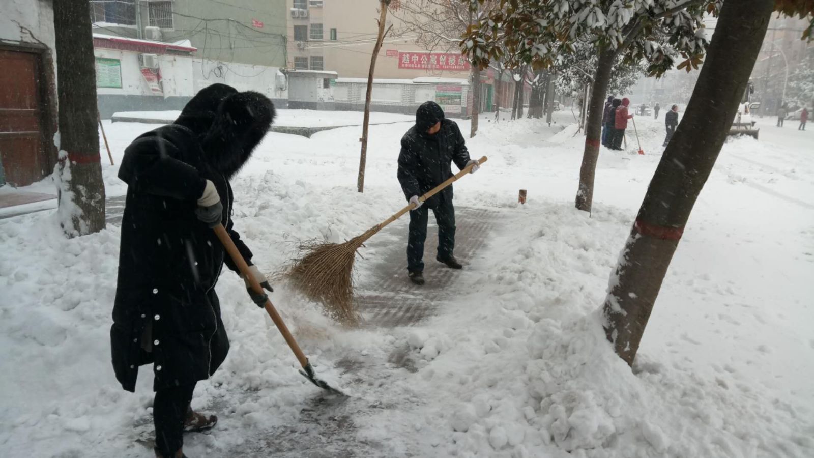 “能盡自己的能力為大家做點(diǎn)事,我覺得非常開心。”黨員志愿者張冰擦擦頭上融化的雪水說。“出門之前我還在擔(dān)心孩子上學(xué)路滑不滑,沒想到推門就看到你們已經(jīng)將積雪清理了,而且在臺(tái)階處鋪上了硬紙,想得太周到了。”社區(qū)大媽肖四琴看到大家干活的場景,忍不住稱贊道。