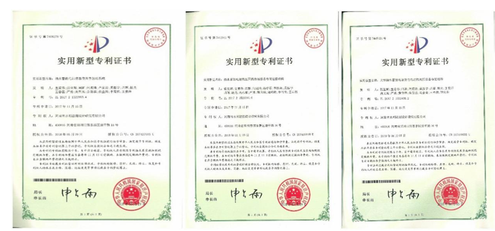 2018年5月~6月,河南省水利勘測(cè)設(shè)計(jì)研究有限公司申請(qǐng)的“抽水蓄能電站背靠背共享起動(dòng)系統(tǒng)”、“抽水蓄能電站機(jī)壓回路換相設(shè)備布置連接結(jié)構(gòu)”和“大型抽水蓄能電站發(fā)電電動(dòng)機(jī)機(jī)壓設(shè)備布置結(jié)構(gòu)”三項(xiàng)科研成果,通過(guò)國(guó)家知識(shí)產(chǎn)權(quán)局的審批,獲得了實(shí)用新型專(zhuān)利證書(shū)。授權(quán)公告日分別是2018年5月29日和2018年6月5日,專(zhuān)利號(hào)分別是 ZL 2017 2 1522993.4、ZL 2017 2 1523585.0和 ZL 2017 2 1522468.2,專(zhuān)利權(quán)限為10年。