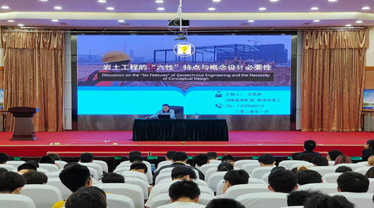 華北水利水電大學(xué)地球科學(xué)與工程學(xué)院于2021年5月13日下午2:30在第一學(xué)術(shù)報告廳舉行“不忘來路-華水學(xué)子講壇之行業(yè)大師進課堂”主題講座,特邀我會理事王榮彥主講。講座由教學(xué)副院長王江峰主持,2018、2019、2020級共420名學(xué)生參加本次講座。