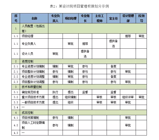 (2)在轉(zhuǎn)型時,對專業(yè)室和項目管理人員之間的權(quán)責(zé)應(yīng)有非常詳細(xì)且明確的界定(如表2)。該權(quán)限的討論確定,一般應(yīng)由生產(chǎn)副院長或院長組織相關(guān)人員評審確定,確保專業(yè)室和項目管理人員明確各自權(quán)限,避免扯皮推諉。