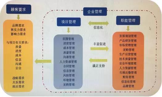 勘察設(shè)計(jì)企業(yè)管理一般包括項(xiàng)目管理和職能管理(如下圖),項(xiàng)目管理的核心是滿足顧客及相關(guān)利益方的要求,職能管理的核心目標(biāo)是為項(xiàng)目提供支撐和支持,并約束項(xiàng)目實(shí)施活動(dòng),所以,質(zhì)量管理不僅要關(guān)注項(xiàng)目,更要關(guān)注外部需求的變化以及后臺(tái)管理(職能管理)的建設(shè),形成高層管總、職能主建、項(xiàng)目主戰(zhàn)的格局,才能更好地實(shí)現(xiàn)企業(yè)的戰(zhàn)略目標(biāo)。