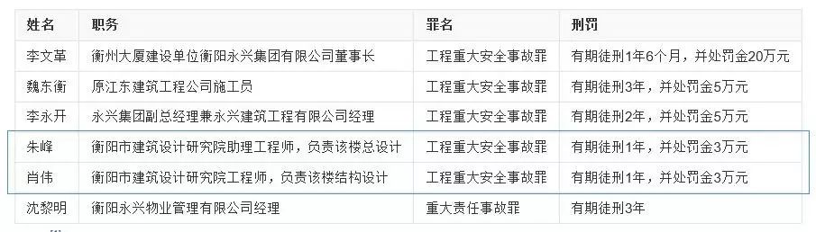 設(shè)計(jì)項(xiàng)目負(fù)責(zé)人及結(jié)構(gòu)設(shè)計(jì)人犯工程重大安全事故罪,判處有期徒刑1年,并處罰金3萬元。