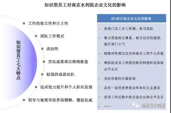 內(nèi)部環(huán)境主要從企業(yè)的發(fā)展及演變歷程、企業(yè)家的精神、知識型員工的特點等維度進行分析,以知識型員工對S設(shè)計院企業(yè)文化的影響為例: