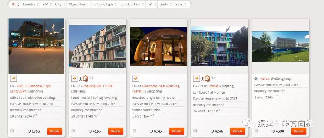 德國PHI官網(wǎng)上顯示的中國認(rèn)證成功的被動房,目前有16個項目,上海漢堡之家是第一棟,朗詩布魯克被動式酒店是第二棟。怎么定的時間的排序?看上面的ID號就可以了。