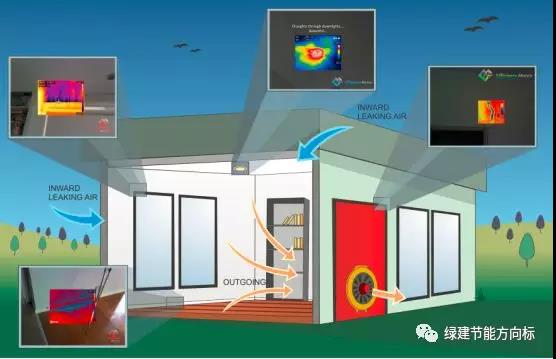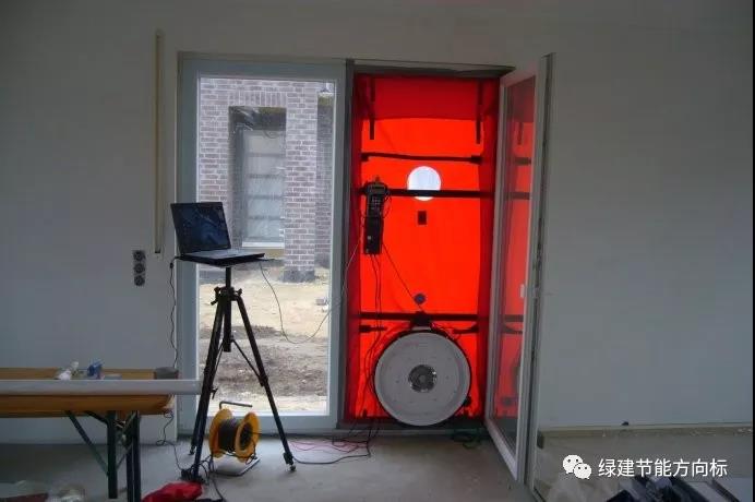 國外對于綠色建筑(DGNB)認(rèn)證和被動房認(rèn)證都是有一個建筑整體氣密性檢測來驗收房子,如下圖所示: