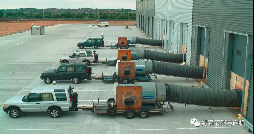 如果你們正在建設(shè)被動房,相信你們一定遇到檢測這個難題。被動房氣密性檢測的標(biāo)準(zhǔn)是要實現(xiàn)室內(nèi)外壓差50Pa下的換氣次數(shù)值做到0.6.對于一個小型建筑來講,用一臺風(fēng)機可以輕松實現(xiàn)這個目標(biāo),但是中國的建筑物體積非常龐大,想達到預(yù)定室內(nèi)外壓差值,必須鼓更多的風(fēng)量,也就是要配置更多的電風(fēng)扇。按照經(jīng)驗,一臺電風(fēng)扇的風(fēng)量在10000m3,左右,檢測3000平米的建筑物沒問題,超過這些數(shù)字,比如幾萬平米的建筑,那么就需要上更多的檢測設(shè)備。這一塊相信國人還不是很清楚。因為按照當(dāng)前的一些被動房示范工程來看,多數(shù)以抽檢某幾個房屋合格為手段,很少有全部檢測整棟大樓的案例。下面我們帶來國外的一系列建筑整體氣密性檢測的案例,讓大家開開眼,看看外國人是怎么看待檢測這回事的!