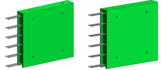 本項(xiàng)目1A棟~1E棟共使用16種預(yù)制外掛墻板構(gòu)件(8對鏡像),10種預(yù)制陽臺構(gòu)件(5對鏡像),5種預(yù)制挑板構(gòu)件(2對鏡像),分別對應(yīng)3種標(biāo)準(zhǔn)戶型;2種預(yù)制欄板構(gòu)件(1對鏡像),對應(yīng)1種標(biāo)準(zhǔn)戶型。本項(xiàng)目1F棟/1G棟共使用13種外墻構(gòu)件(4對鏡像),分別對應(yīng)5種標(biāo)準(zhǔn)戶型;1種樓梯構(gòu)件。