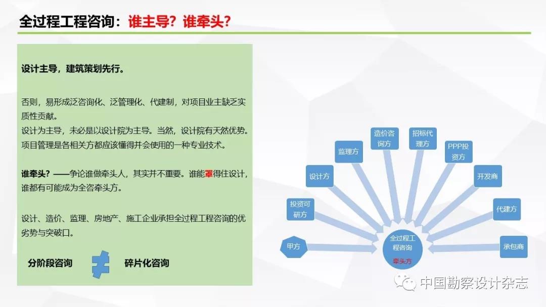 今天推送的是北京筑信衡工程設(shè)計顧問有限公司董事長、住建部全過程工程咨詢服務(wù)技術(shù)標準課題組專家王宏海的演講PPT內(nèi)容。