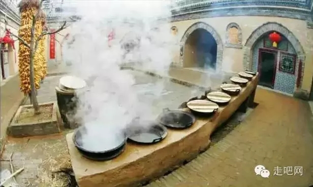環(huán)視院落,煙熏火燎,質(zhì)樸自然。大院里一溜排開的七口鐵鍋,承載了多少溫情和回憶。
