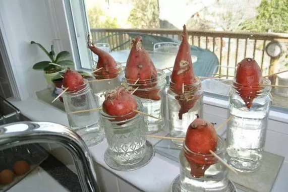 3、三天后紅薯生根發(fā)芽