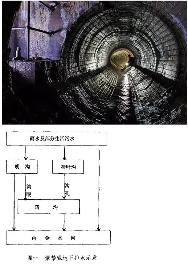 紫禁城內(nèi)大小90多個院落,通過本院的排水溝道,利用北高南低的地勢就近排入地下暗溝,最后都匯流于內(nèi)金水河,再至東華門南隅的水閘流出,與外金水河匯合。
