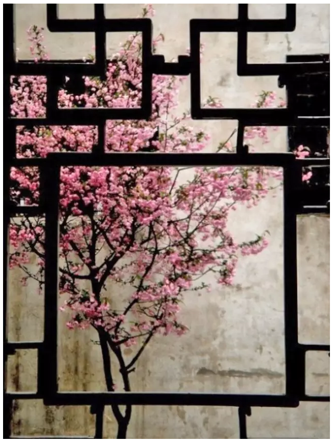 雕花窗,窗外花正放。