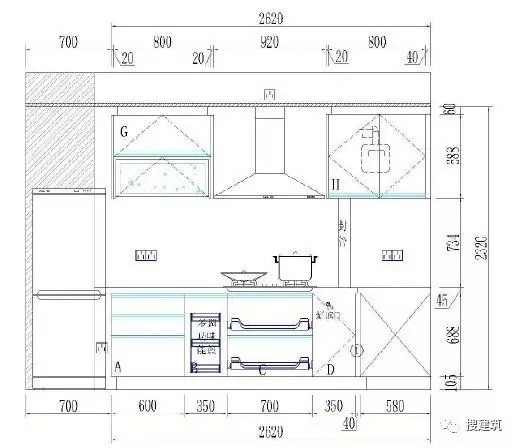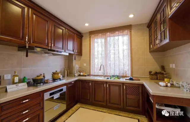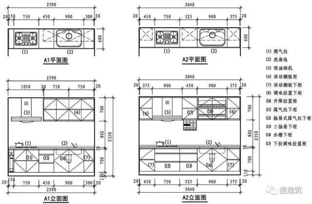 布置應(yīng)遵循洗、切、炒的流線,以間距800為宜,爐灶應(yīng)避開(kāi)窗口設(shè)置,并考慮兩人同時(shí)操作可能,櫥柜進(jìn)深大于560,長(zhǎng)度在2000-3000之間。吊柜進(jìn)深350,凈高不小于500。電氣插座應(yīng)避免靠近水盆、灶具,并結(jié)合家具布置。廚房吊柜設(shè)置時(shí)應(yīng)注意避免擋窗。吊頂下皮應(yīng)高于窗洞上皮50。