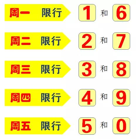 (一)按機(jī)動(dòng)車號(hào)牌(含臨時(shí)號(hào)牌和外地號(hào)牌)蕞后一位阿拉伯?dāng)?shù)字(尾數(shù)為字母的,以末位數(shù)字為準(zhǔn)),工作日每天限行兩個(gè)號(hào)。