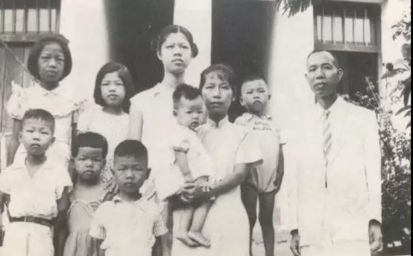 (丘成桐兒時(shí)全家福,家中兄弟姐妹八人,最右為父親)