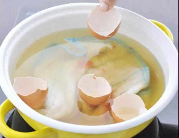 將蛋殼丟進(jìn)鍋中開(kāi)水煮