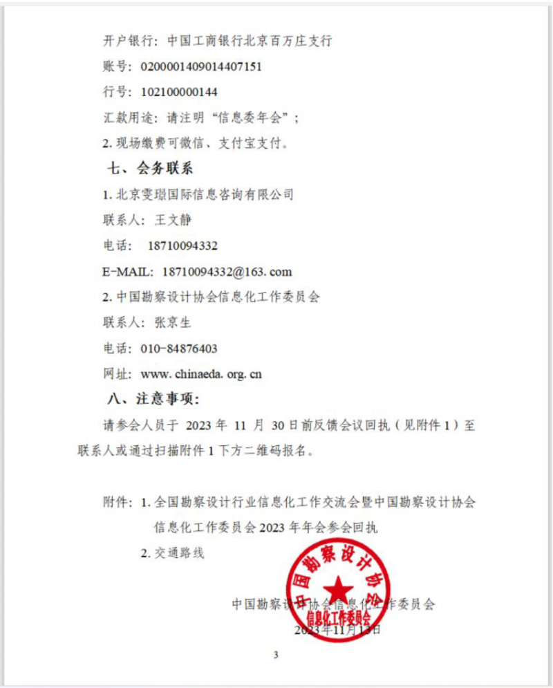 附件:《中國(guó)勘察設(shè)計(jì)協(xié)會(huì)信息化工作委員會(huì)關(guān)于召開2023年全國(guó)勘察設(shè)計(jì)行業(yè)信息化工作交流會(huì)暨中國(guó)勘察設(shè)計(jì)協(xié)會(huì)信息化工作委員會(huì)2023年年會(huì)的通知》(中設(shè)協(xié)信字〔2023〕21號(hào))