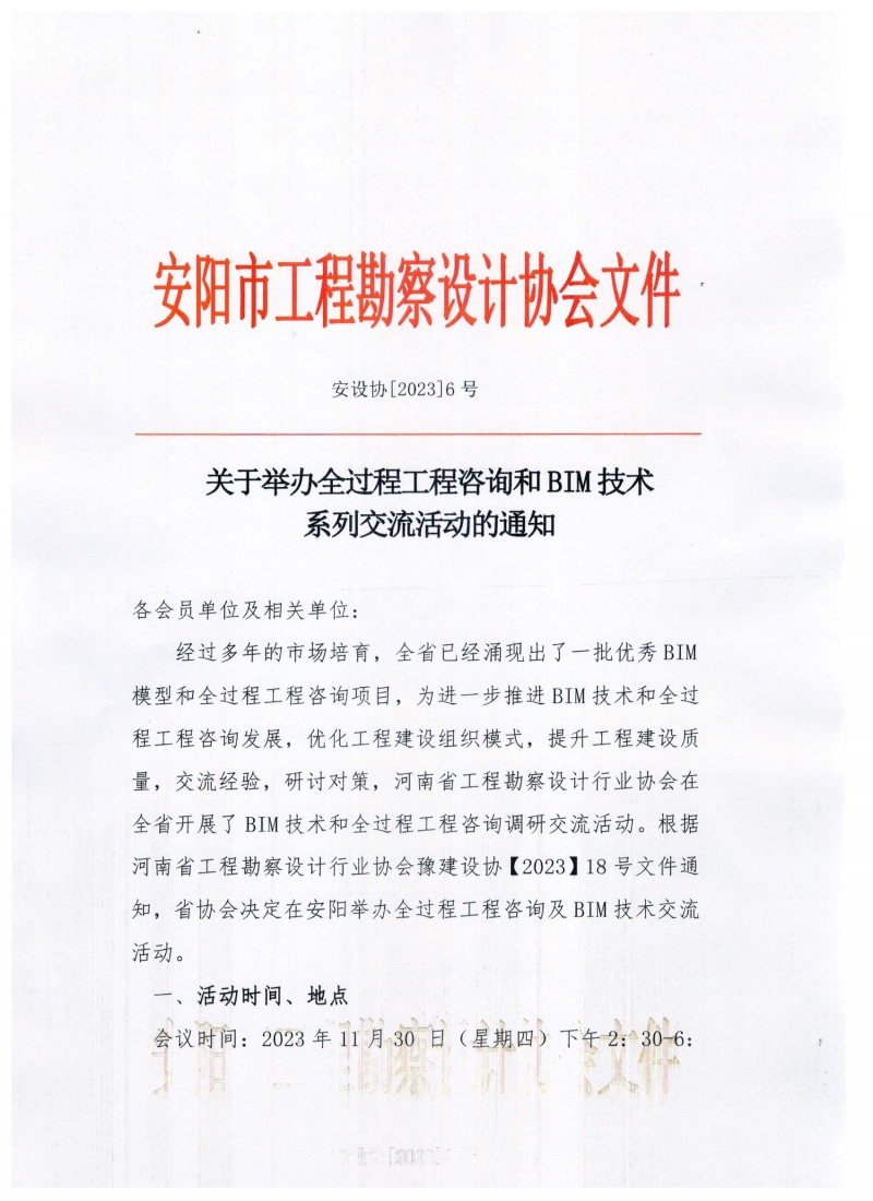 關(guān)于舉辦全過程工程咨詢和BIM技術(shù)系列交流活動(安陽站)的通知