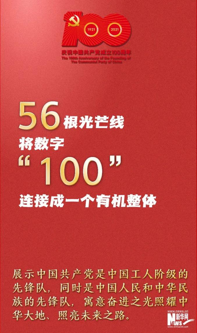 今天中宣部公布中國共產(chǎn)黨成立100周年慶祝活動標識標識由黨徽數(shù)字“100”“1921”“2021”和56根光芒線組成生動展現(xiàn)中國共產(chǎn)黨團結帶領中國人民不忘初心、牢記使命、艱苦奮斗的百年光輝歷程來源:新華社、新華網(wǎng)