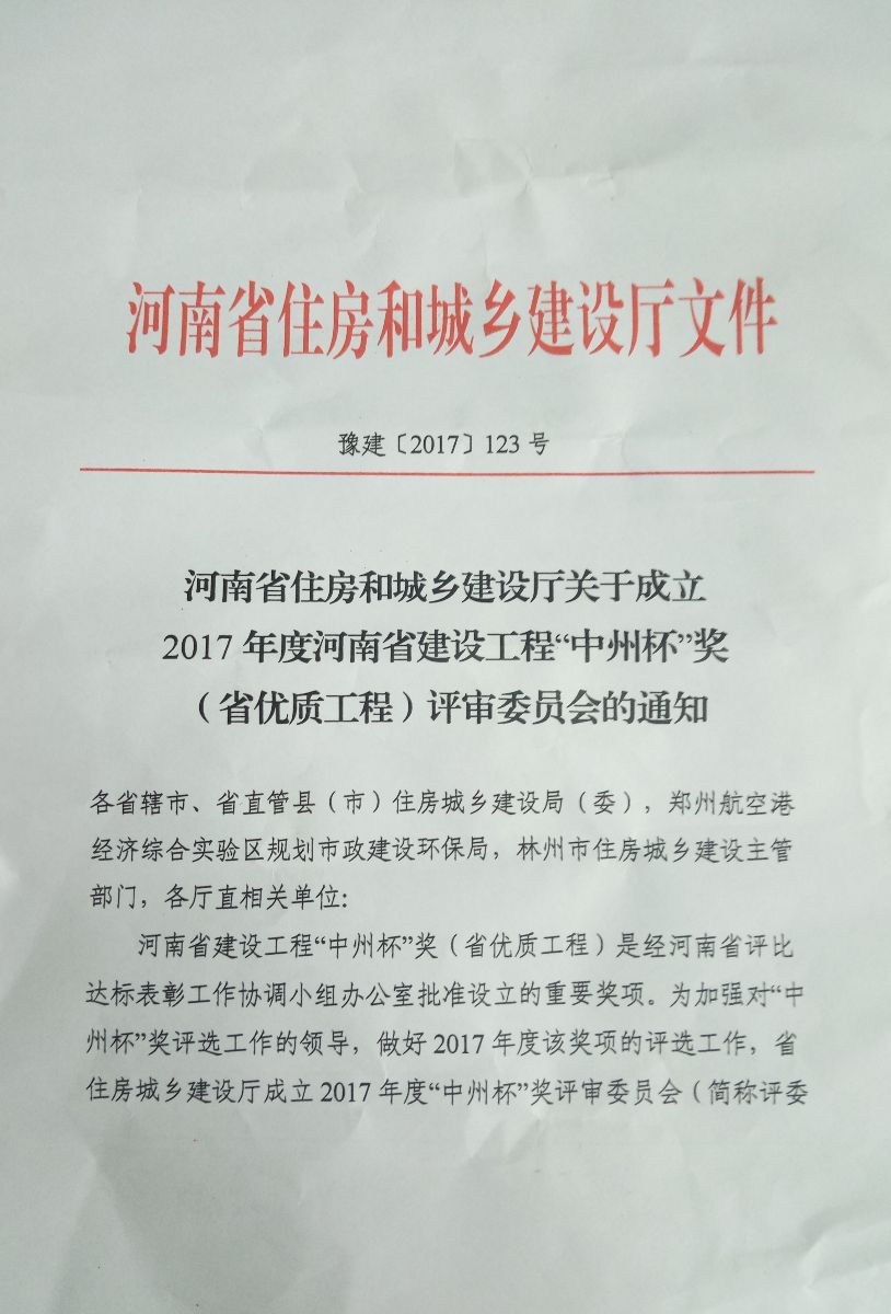 關(guān)于成立河南省建設(shè)工程“中州杯”獎(jiǎng)(省優(yōu)質(zhì)工程)評(píng)審委員會(huì)的通知
