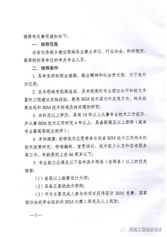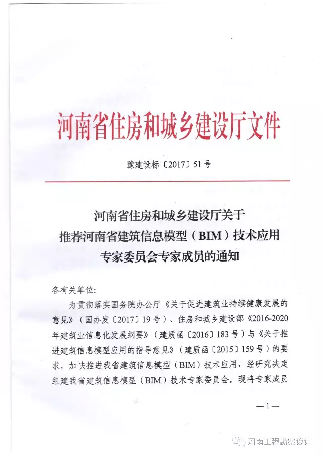 關(guān)于推薦河南省建筑信息模型(BIM)技術(shù)應(yīng)用專家委員會專家成員的通知