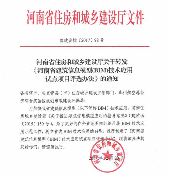 省住建廳關(guān)于轉(zhuǎn)發(fā)《河南省建筑信息模型(BIM)技術(shù)應(yīng)用試點項目評選辦法》的通知