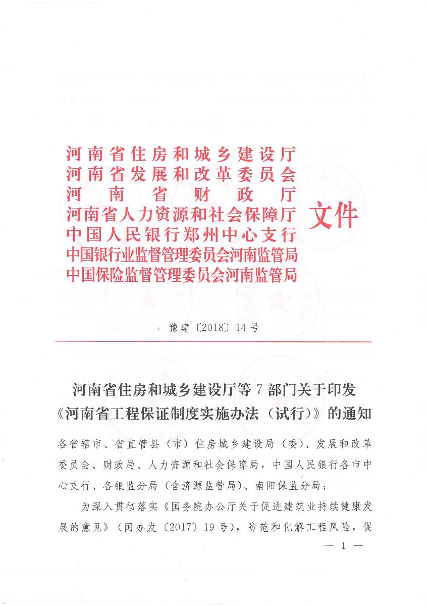 省住建廳等7部門(mén)關(guān)于印發(fā)《河南省工程保證制度實(shí)施辦法(試行)》的通知