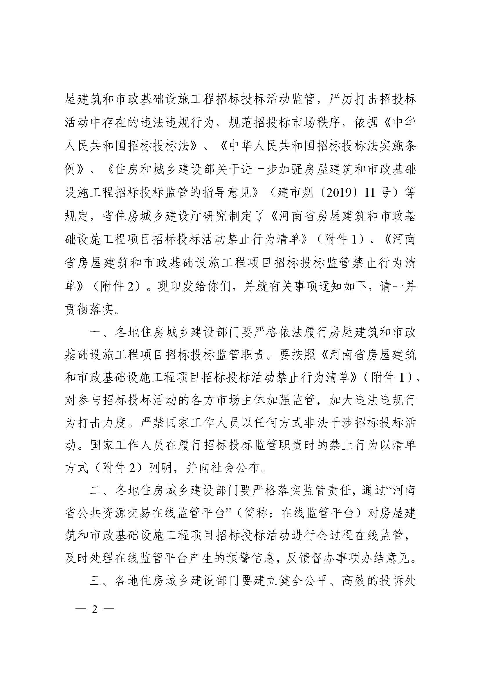 省住建廳關(guān)于印發(fā)《河南省房屋建筑和市政基礎(chǔ)設(shè)施工程項目招標投標監(jiān)管禁止行為清單》《河南省房屋建筑和市政基礎(chǔ)設(shè)施工程項目招標投標活動禁止行為清單》的通知
